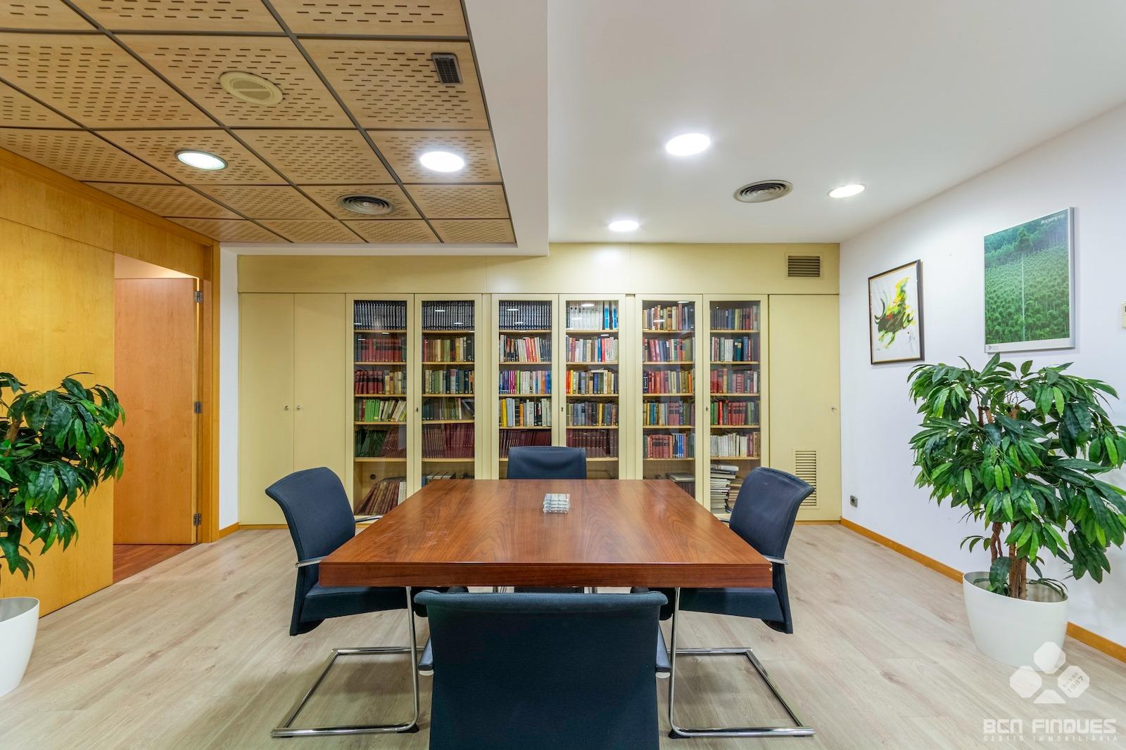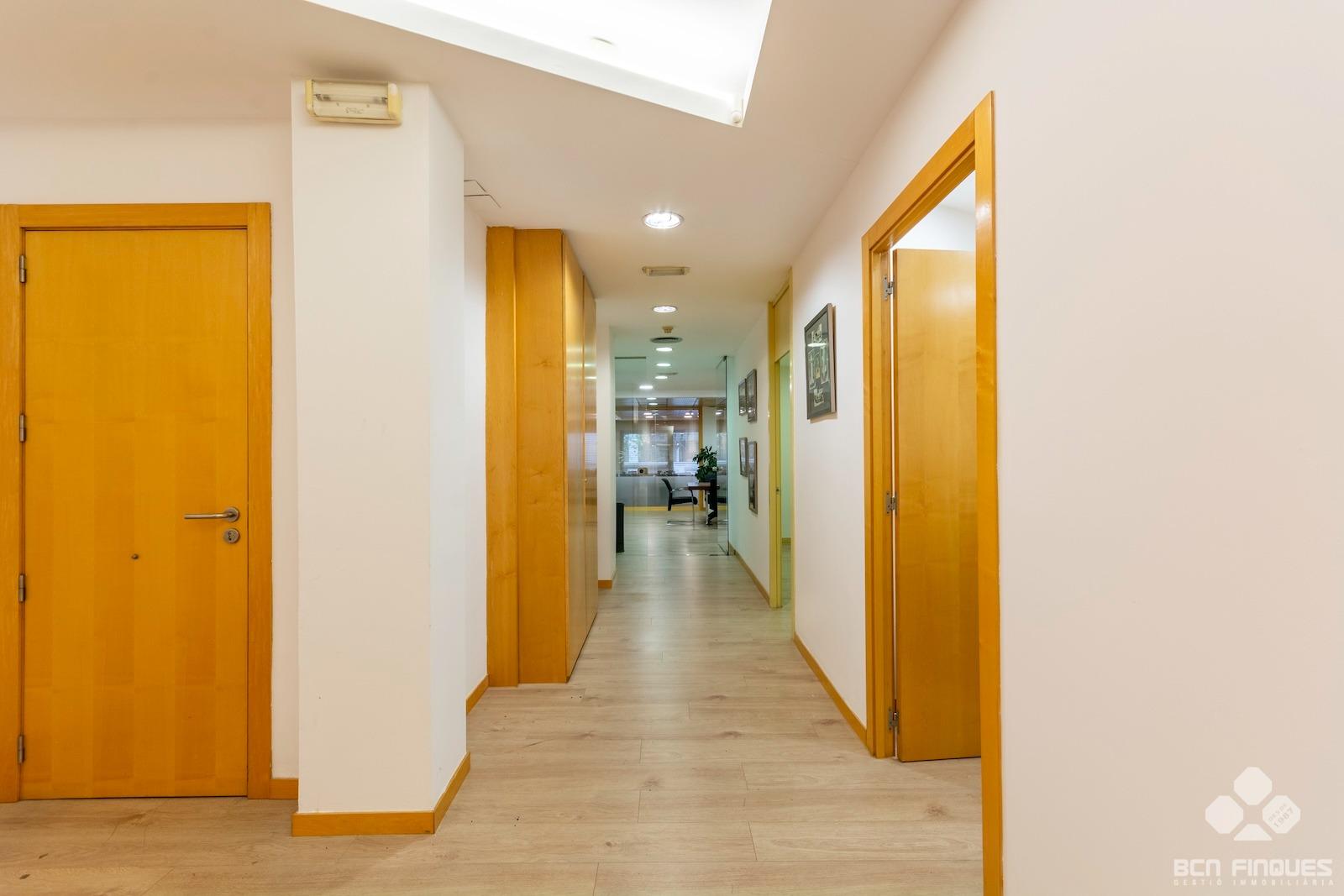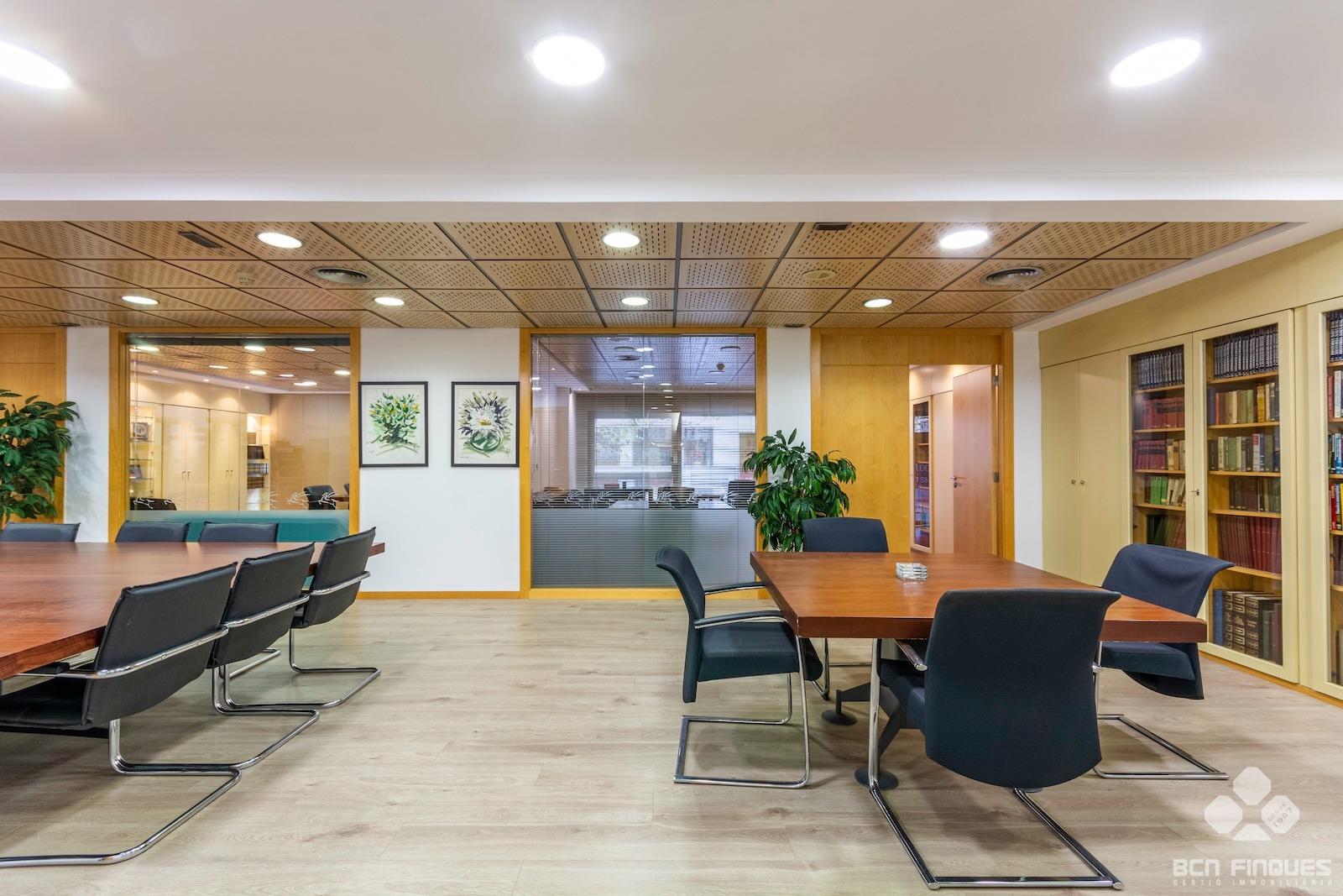 GRAN DESPACHO COMERCIAL de 1.100m2, entre las calles de Muntaner y Aribau y cercano al Hospital Clínic. ~Interiormente dividido en Planta Baja y Planta Entresuelo.~-La PLANTA BAJA tiene una superficie de 500m2, con amplia fachada exterior y se divide en amplia recepción, gran sala central de trabajo, 5 despachos independientes, aseos para señora y caballeros y zona de cocina con office. Tiene acceso directo por la calle y por el vestíbulo de la finca.~-La PLANTA ENTRESUELO tiene una superficie de 600m2, y comunicada con el local en planta baja mediante una amplia escalera interior. Se distribuye en 2 despachos de dirección con cristalera exterior que se comunican con una gran sala de reuniones con 1 aseo para señoras y caballeros, 1 despacho privado con 1 aseo, Gran sala central de trabajo, 7 despachos cerrados, y zona con aseos, office, 1 sala técnica y almacén. La planta tiene también dos puertas de acceso independiente directo por la escalera.~~ACABADOS: Muy buena conservación y acabados en general, con gran cantidad de armarios y archivos para almacenaje, divisiones de cristal, pavimento de parquet, bomba de aire frio/calor en todas las salas, despachos principales con una excelente presencia. Actualmente tiene instalado sistema de alarma.~~Muy buena ubicación, en l'Antiga Esquerra de l'Eixample, donde podemos encontrar una amplia oferta tanto en servicios como en comunicaciones en la zona. ~~PUEDE CONSULTARNOS CON LAS DISTINTAS POSIBILIDADES QUE PODEMOS OFRECERLES EN METROS Y ESPACIOS, EN FUNCIÓN DE SUS NECESIDADES. ~~Este arrendamiento está sujeto al IVA.~