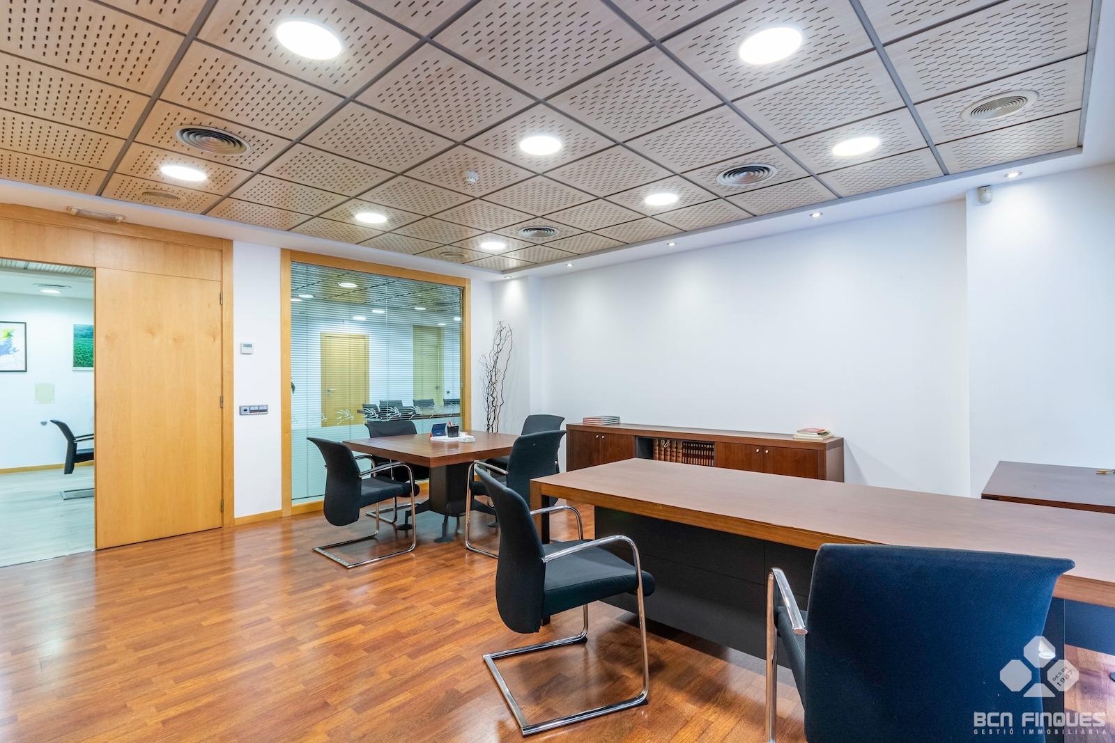 GRAN DESPACHO COMERCIAL de 1.100m2, entre las calles de Muntaner y Aribau y cercano al Hospital Clínic. ~Interiormente dividido en Planta Baja y Planta Entresuelo.~-La PLANTA BAJA tiene una superficie de 500m2, con amplia fachada exterior y se divide en amplia recepción, gran sala central de trabajo, 5 despachos independientes, aseos para señora y caballeros y zona de cocina con office. Tiene acceso directo por la calle y por el vestíbulo de la finca.~-La PLANTA ENTRESUELO tiene una superficie de 600m2, y comunicada con el local en planta baja mediante una amplia escalera interior. Se distribuye en 2 despachos de dirección con cristalera exterior que se comunican con una gran sala de reuniones con 1 aseo para señoras y caballeros, 1 despacho privado con 1 aseo, Gran sala central de trabajo, 7 despachos cerrados, y zona con aseos, office, 1 sala técnica y almacén. La planta tiene también dos puertas de acceso independiente directo por la escalera.~~ACABADOS: Muy buena conservación y acabados en general, con gran cantidad de armarios y archivos para almacenaje, divisiones de cristal, pavimento de parquet, bomba de aire frio/calor en todas las salas, despachos principales con una excelente presencia. Actualmente tiene instalado sistema de alarma.~~Muy buena ubicación, en l'Antiga Esquerra de l'Eixample, donde podemos encontrar una amplia oferta tanto en servicios como en comunicaciones en la zona. ~~PUEDE CONSULTARNOS CON LAS DISTINTAS POSIBILIDADES QUE PODEMOS OFRECERLES EN METROS Y ESPACIOS, EN FUNCIÓN DE SUS NECESIDADES. ~~Este arrendamiento está sujeto al IVA.~