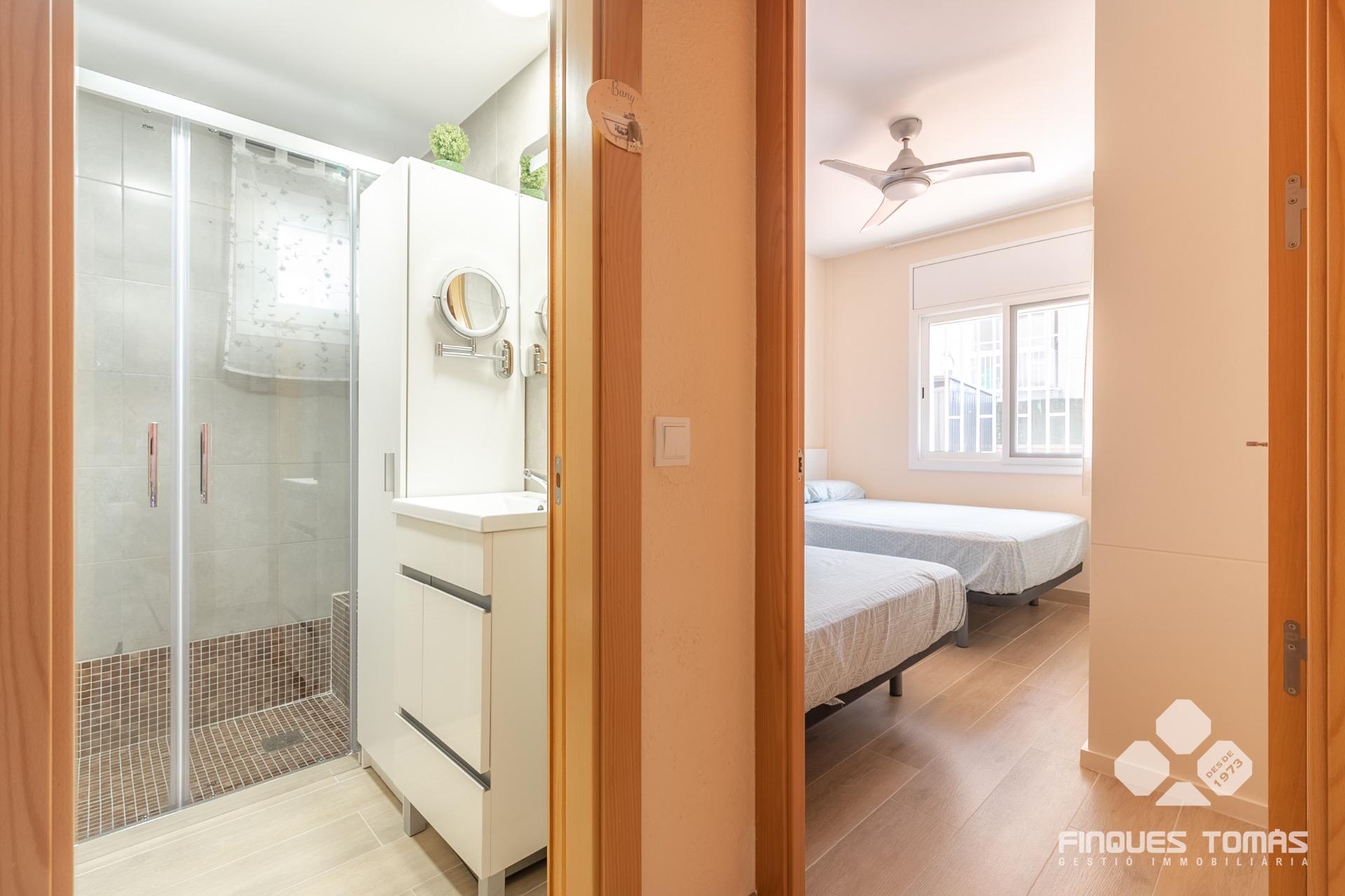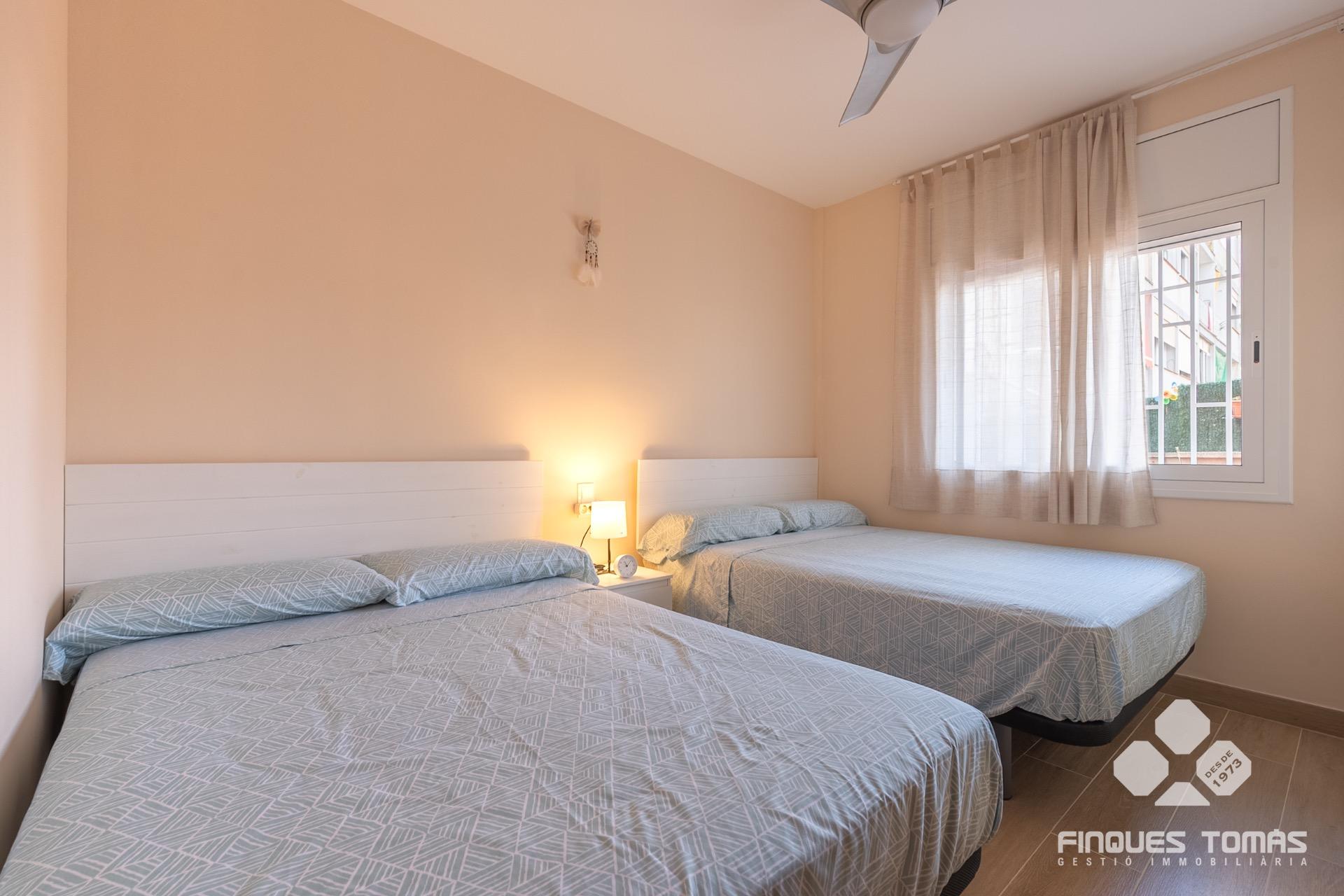 Preciosa planta baja semireformada y totalmente exterior, con gran terraza privada en Segur de Calafell, ubicada en una tranquila zona residencial y a menos de 10 minutos a pie de la playa. Una propiedad que combina confort, funcionalidad y espacios exteriores únicos, ideal para quienes desean disfrutar del entorno mediterráneo.~~Al entrar, nos recibe un luminoso salón comedor con acceso directo a la terraza privada exterior de unos 50 m², uno de los grandes atractivos de esta vivienda. Se trata de una terraza muy amplia, perfecta para crear una zona chillout, un comedor exterior o colocar tumbonas para tomar el sol. Además, cuenta con toldos extensibles para los días más soleados y un práctico trastero de metal en una esquina, sin restar espacio útil. Está equipada con suelos de gres cerámico en tonos cálidos, fáciles de mantener e ideales para el uso exterior diario. El recibidor comunica también con la cocina independiente, completamente equipada, con una distribución práctica y ventilación natural. Desde el salón se accede a la zona de noche, que consta de dos dormitorios dobles y un cuarto de baño completo con ducha. ?~~La vivienda está semireformada, con suelos de gres porcelánico imitación madera y acabados de alta calidad. Cuenta con carpintería exterior de aluminio con doble acristalamiento tipo Climalit y está equipada con aire acondicionado por splits. Todas las estancias son exteriores, lo que garantiza una excelente entrada de luz natural y ventilación durante todo el día. Situada en un entorno tranquilo y bien comunicado, cerca de todos los servicios esenciales –farmacias, supermercados, comercios y restauración–, y a solo 5 minutos a pie de la estación de tren.~~??Una planta baja única y exclusiva que, por sus características y su ubicación inmejorable, representa una excelente oportunidad como primera o segunda residencia. Contáctanos para más información o para realizar una visita privada.~