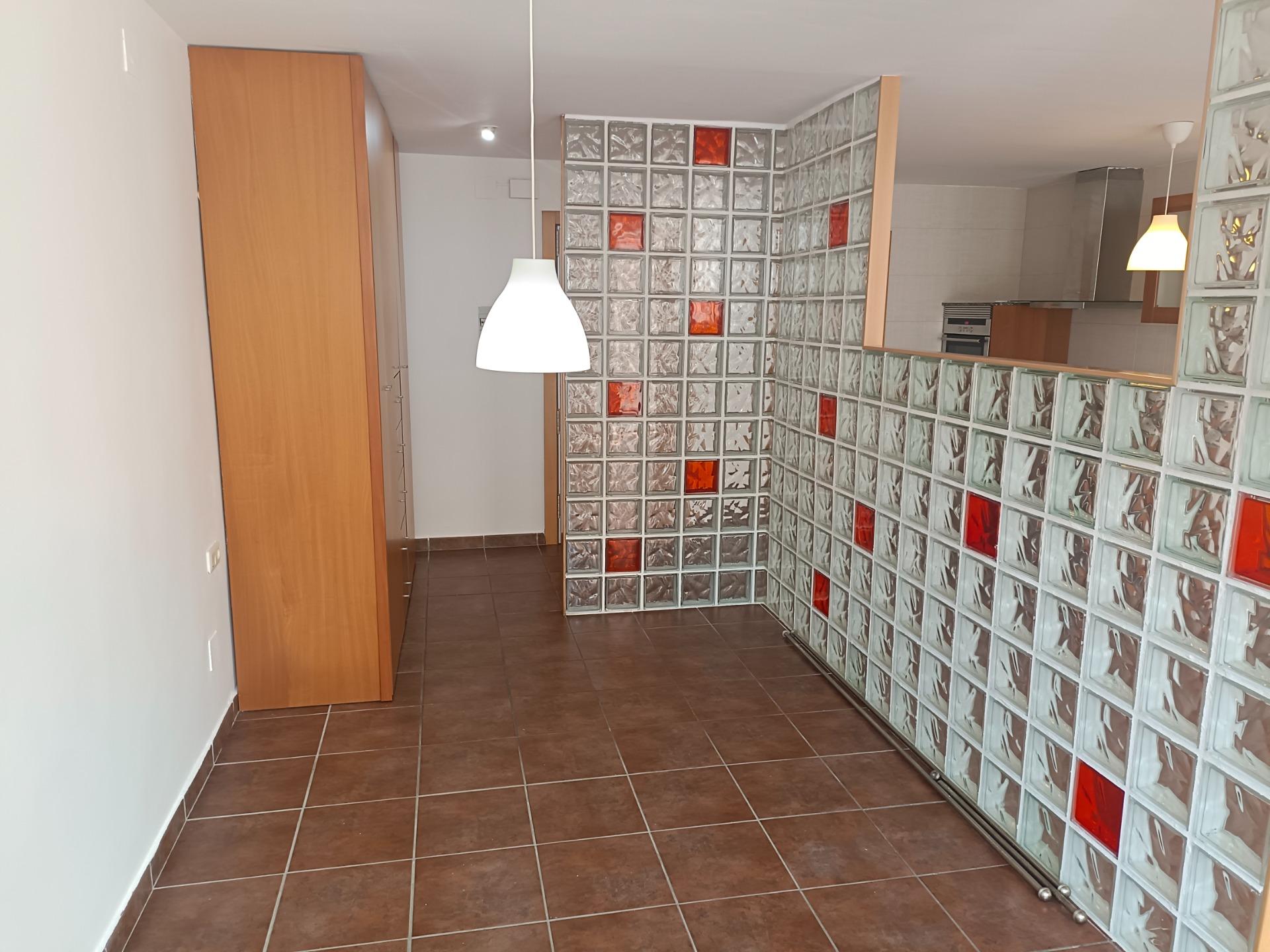 57.00 m2Ubicado en la céntrica Avenida de Catalunya, la arteria principal de la Palma de Cervelló, en una finca moderna bien cuidada, encontramos una vivienda exterior en perfecto estado de conservación.~~Interiormente distribuida en:~-Amplio Comedor-Salón con amplio ventanal exterior. ~-Habitación exterior, integrada al salón, pero separada mediante división de cristal de paves.~-1 Baño completo con plato de ducha.~-Cocina abierta a comedor-salón, equipada con encimera vitrocerámica, campana y columna con horno alto.~-Zona de lavadero cerrado, con calentador y espacio para lavadora y secadora.~~Muy buenos acabados con:~Carpintería exterior de aluminio con doble cristal~Pavimento de gres~Armario en habitación~Iluminación mediante halógenos en techos~Bomba de aire frio/calor~~Muy buena ubicación con amplia oferta de servicios y comunicaciones en la zona.~~Todos los gastos que se generen de la compraventa (ITP/IVA, notario, registro, etc..), serán por cuenta de la parte compradora.~~ ~Características