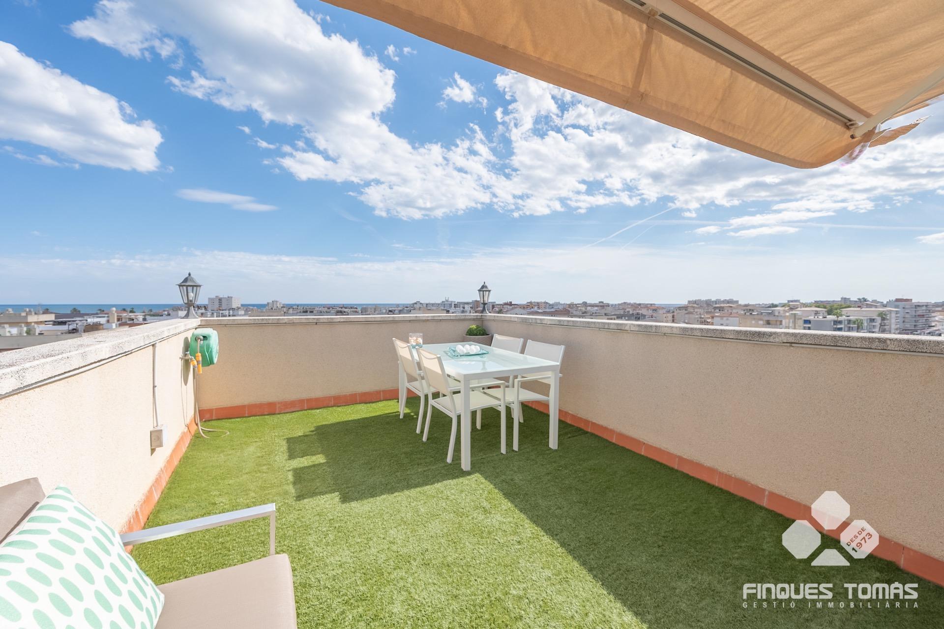 Presentamos este espectacular ático en venta totalmente exterior, con gran terraza privada y vistas laterales al mar, ubicado a tan solo 150 metros de la playa en Segur de Calafell, Tarragona. Gracias a sus características y ubicación privilegiada, es una excelente oportunidad tanto como residencia habitual, segunda vivienda o inversión patrimonial, con la combinación perfecta de luz natural, amplitud y privacidad.~~La vivienda cuenta con una distribución cómoda y bien pensada; separa de forma natural las zonas de día y de noche, ofreciendo funcionalidad y confort en cada estancia. Al entrar, encontramos un bonito recibidor que conecta con un amplio salón comedor con acceso directo a una terraza exterior tipo solárium. Desde el salón se accede a la cocina independiente totalmente equipada y a la zona de noche, que consta de dos dormitorios dobles y una habitación individual que puede utilizarse también como despacho o vestidor. El dormitorio principal cuenta con armarios empotrados, mientras que el otro dormitorio doble tiene salida a una segunda terraza exterior con galería, perfecta para utilizar como trastero o zona de almacenaje extra. Dispone de un baño completo con plato de ducha y un aseo adicional, ambos con ventana, lo que aporta mayor comodidad para toda la familia o visitas. Todas las estancias de la vivienda son orientadas al exterior, lo que garantiza una excelente entrada de luz y ventilación natural durante todo el día.~~Una de las características más destacadas de este ático es su gran terraza exterior con vistas laterales al mar, perfecta para crear una zona chill-out, comedor exterior o instalar tumbonas. Un espacio ideal para relajarte, tomar el sol, organizar comidas al aire libre o simplemente disfrutar de la brisa marina. Se trata de un gran valor añadido en zonas costeras que aporta privacidad y comodidad, muy demandado para alquiler. Este ático se encuentra en una cuarta planta de una finca con ascensor y cuenta con plaza de parking privada incluida en el precio. Situado a solo una calle de la playa y el Paseo Marítimo, en un entorno tranquilo y bien comunicado, cerca de todos los servicios esenciales –farmacias, supermercados, comercios y restauración–, y a 7 minutos a pie de la estación de tren.~~Contáctanos para más información y descubre esta propiedad en exclusiva con nosotros.~