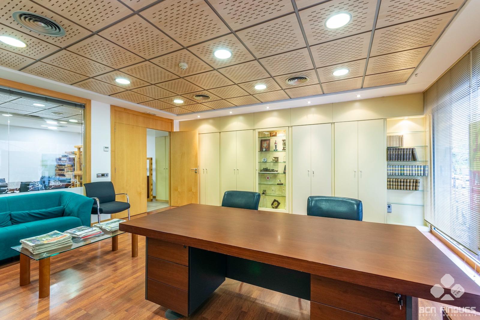 GRAN DESPACHO COMERCIAL de 1.100m2, entre las calles de Muntaner y Aribau y cercano al Hospital Clínic. ~Interiormente dividido en Planta Baja y Planta Entresuelo.~-La PLANTA BAJA tiene una superficie de 500m2, con amplia fachada exterior y se divide en amplia recepción, gran sala central de trabajo, 5 despachos independientes, aseos para señora y caballeros y zona de cocina con office. Tiene acceso directo por la calle y por el vestíbulo de la finca.~-La PLANTA ENTRESUELO tiene una superficie de 600m2, y comunicada con el local en planta baja mediante una amplia escalera interior. Se distribuye en 2 despachos de dirección con cristalera exterior que se comunican con una gran sala de reuniones con 1 aseo para señoras y caballeros, 1 despacho privado con 1 aseo, Gran sala central de trabajo, 7 despachos cerrados, y zona con aseos, office, 1 sala técnica y almacén. La planta tiene también dos puertas de acceso independiente directo por la escalera.~~ACABADOS: Muy buena conservación y acabados en general, con gran cantidad de armarios y archivos para almacenaje, divisiones de cristal, pavimento de parquet, bomba de aire frio/calor en todas las salas, despachos principales con una excelente presencia. Actualmente tiene instalado sistema de alarma.~~Muy buena ubicación, en l'Antiga Esquerra de l'Eixample, donde podemos encontrar una amplia oferta tanto en servicios como en comunicaciones en la zona. ~~PUEDE CONSULTARNOS CON LAS DISTINTAS POSIBILIDADES QUE PODEMOS OFRECERLES EN METROS Y ESPACIOS, EN FUNCIÓN DE SUS NECESIDADES. ~~Este arrendamiento está sujeto al IVA.~